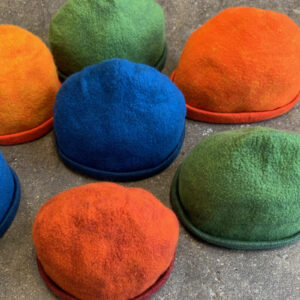 En hatt kan vara en ihålig form där ullen filtas runt en mall. Hatten filtas i fin ull med olika färger på insidan och utsidan. Den kliar inte och är därför bra som bastuhatt.