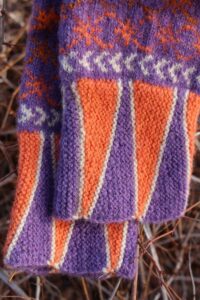 Traditional Estonian mitten cuffs are lacy, striped, entralac or faux entralac. I am adding another one – a triangular mitten cuff, which I learnt in Latvia.